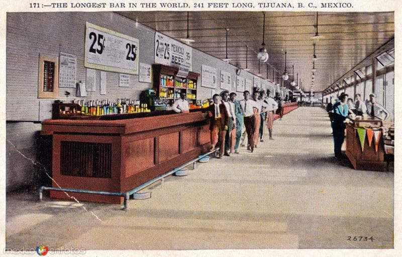 La famosa cantina "La Ballena", conocida internacionalmente como "The Longest Bar in The World " llegó a ser la barra/cantina más larga del mundo. Uno de los grandes referentes de Tijuana durante la era de la prohibición.